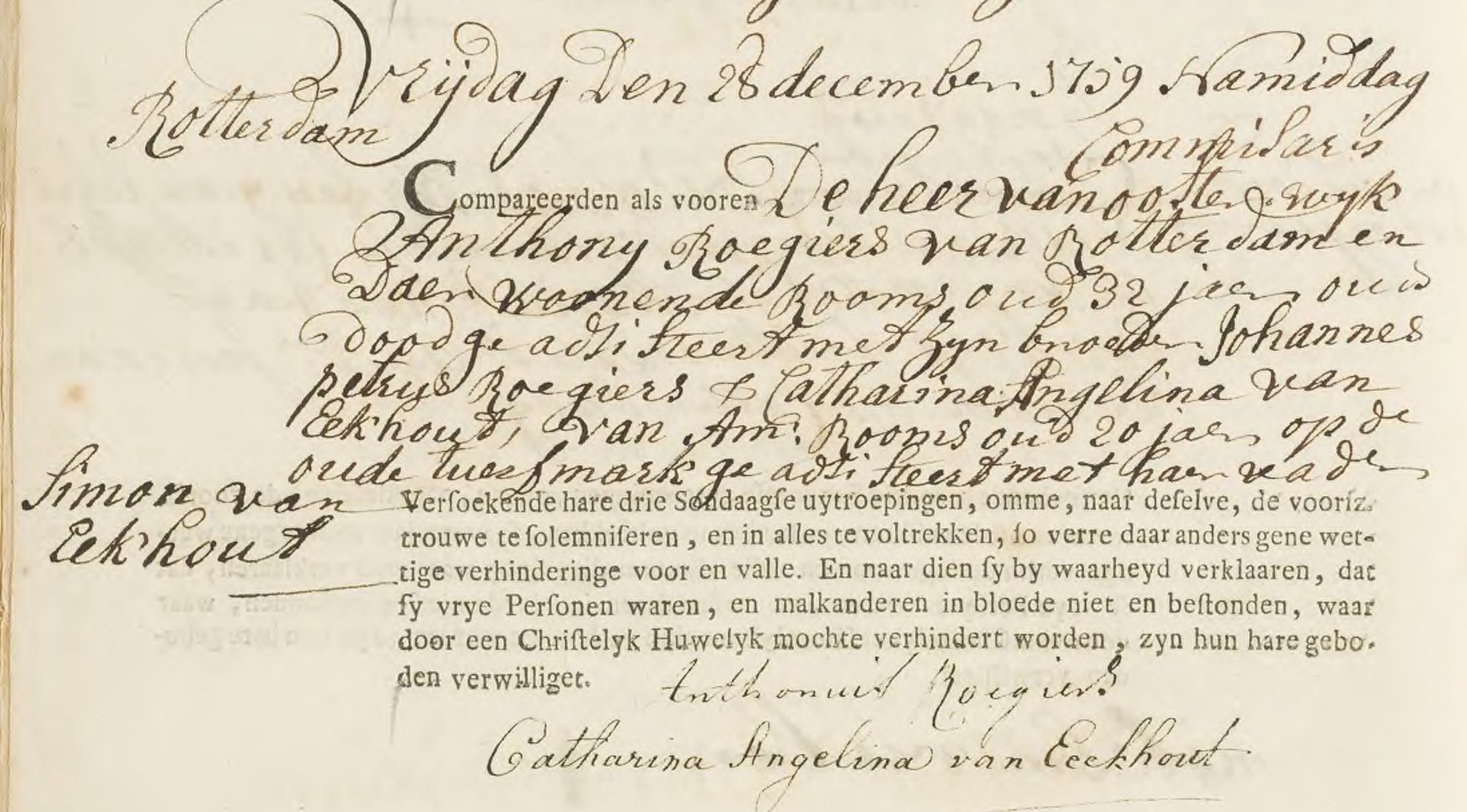 Dus het cabaret is zeer waarschijnlijk een huwelijksgeschenk geweest voor Catharina Angelina van Eeckhout met Anrhonij Roegiers in januari 1760. Ondertrouw acte zie foto.